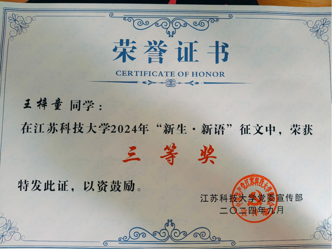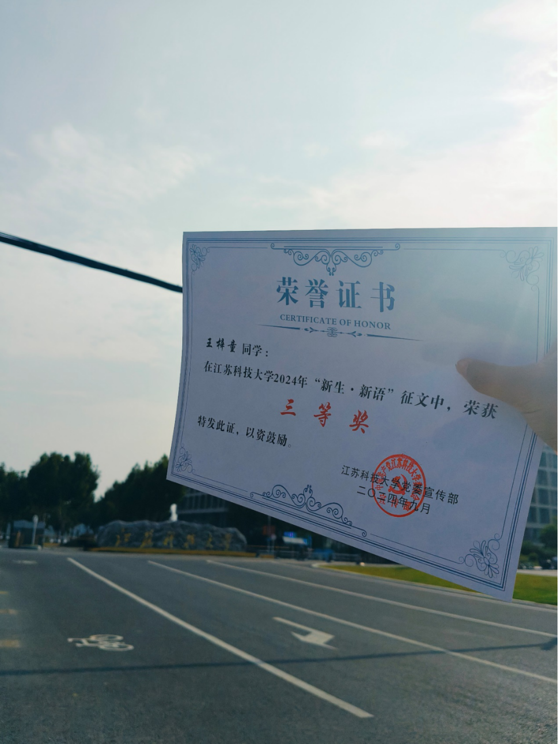 我与江科大的第一次产生联系是在新生新语征文比赛里,我以《缝纫机》叩开了三等奖的大门。起初,我在旧屋邂逅那台蒙尘的缝纫机,它似有魔力,牵引我探寻过往。我将心中涌动的情感付诸笔端,把对往昔岁月的怀念、对亲人的思念,都融入这篇文章。当得知获奖的那一刻,欣喜如烟花在心底绽放。这台缝纫机,不仅串联起家庭的回忆,更成为我创作路上的珍宝。这份荣誉是认可,更是前行的动力,激励我在文字海洋中继续扬帆远航。