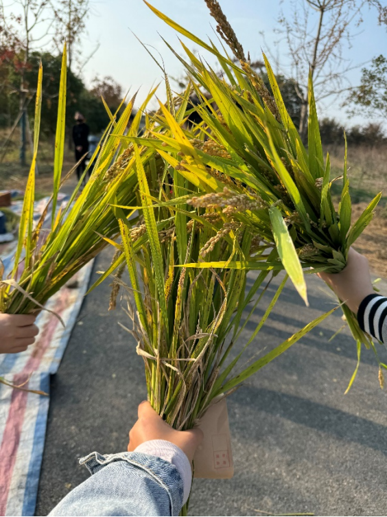 金秋时节,学校组织的水稻收割活动热火朝天。同学们挽起裤脚、手握镰刀,在稻田里忙碌,汗水滑落,却难掩收获的喜悦。