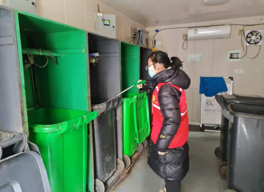 为提升公众环保意识,形成垃圾分类的新风尚,实践团成员在永丰社区垃圾站点值守,观察居民是否进行正确的垃圾投放,及时制止错误行为并引导居民进行垃圾分类,在例如午饭时间这样的扔垃圾人数较少的时间段,用夹子分拣垃圾桶里的垃圾,检查是否有遗漏的错误分类的垃圾,按照可回收物、有害垃圾、厨余垃圾、其他垃圾的分类标准,放置到正确的垃圾桶里。垃圾分类是一项需要长期坚持的工作。通过学习和实践,人们可以逐渐掌握垃圾分类的技巧,为环境保护做出自己的贡献。