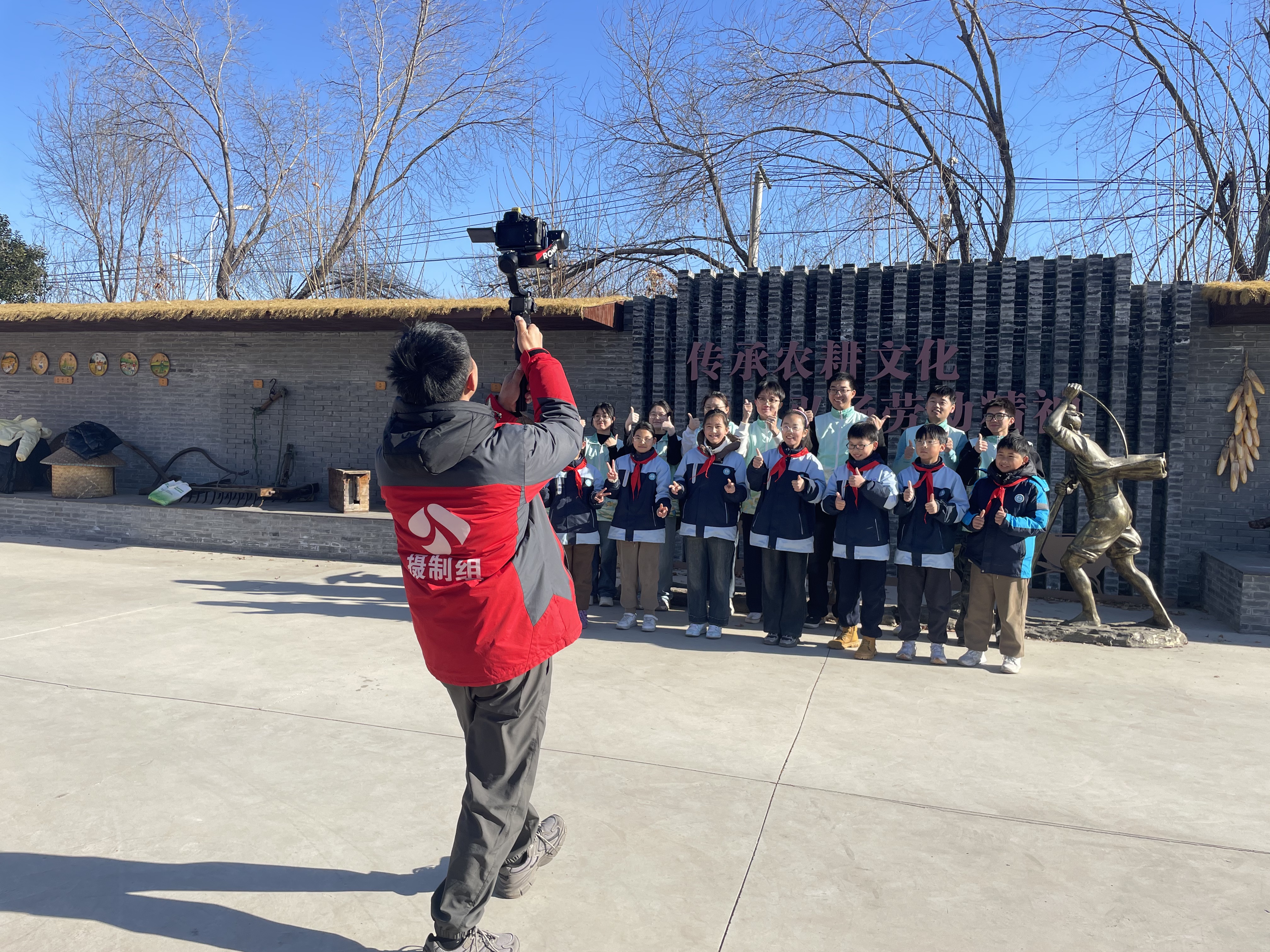 图3 实践团成员在耕读园录制江苏省电视台节目