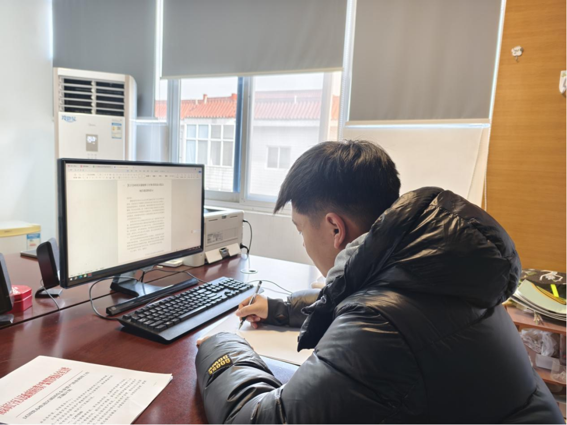 图为尚栀涵同学在街道进行文件总结工作