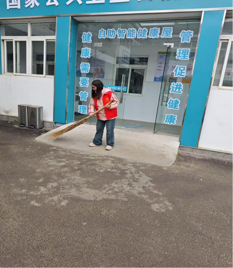 图1 李欣悦在社区医院打扫卫生