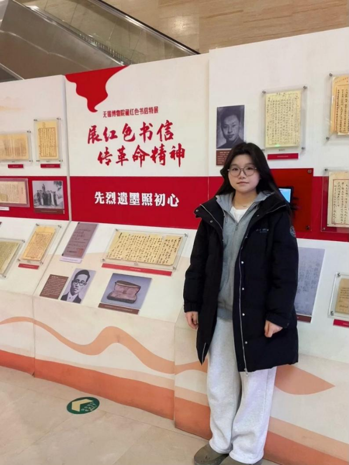 实践团的成员来自五湖四海,尽管地域不同,文化各具特色,但他们都怀揣着同样的热忱,希望通过自己的努力,让家乡的红色文化故事被更多人知晓。来自广西的辛柔铤同学前往了八路军桂林办事处旧址和台儿庄战役领导人李宗仁的官邸,去感受抗战时期共产党和国民党军队的爱国情结;来自山东的李淑君同学前往了湖西革命烈士陵园,缅怀逝去的革命英烈们;在无锡的沈思羽同学前往无锡博物院参观红色书信特展,从文字中感受先烈们对家国的热爱;盐城的吴艳同学前往盐城新四军纪念馆,从一幅幅黑白照片中感受战士们的艰苦奋斗;武汉的罗文菲和周梓豪同学分别前往武汉中共中央机关旧址纪念馆和辛亥革命历史陈列馆进行参观,被革命先驱们的英勇事迹深深震撼;来自长沙的张子祺同学前往了橘子洲头,看着风华正茂的毛泽东青年艺术雕塑,感受到了毛主席少年时期的意气风发踌躇满志;朱吴颜冰同学去到无为市革命史迹展览馆,感受家乡人民的满腔热血。